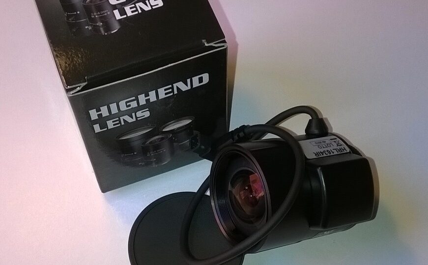 Obiettivo auto-iris 1,6 – 3,4 mm varifocale, con filtro IR-CUT, per poter posizionaresullo stesso piano focale sia la luce infrarossa che quella naturale e consentire quindi una messa a fuoco precisa sia di giorno che di notte (assenza di FOCUS SHIFT).passo CS