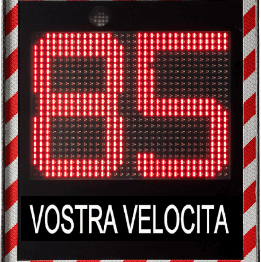 iSAFE1 è un pannello dissuasore che include un radar Doppler per misurare la velocità istantanea dei veicoli e mostrare la misura sui LED del pannello così da ridurre le velocità eccessive.