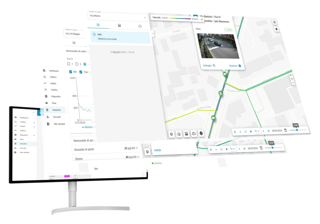 La piattaforma software è stata sviluppata per la gestione efficiente ed efficace dei flussi veicolari in ambito urbano e permette l’analisi dei dati di traffico e delle misure dei parametri ambientali e degli inquinanti, così da perseguire strategie di miglioramento in ottica Agenda 2030.